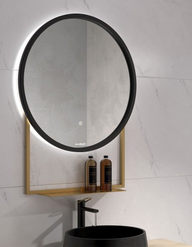 ESPEJO RETROILUMINADO CON MARCO ESCANDINAVO HAWAI CIRCULAR CON REPISA